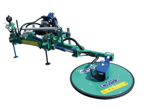 Broyage à droite : attelage 3 points arrière, 3 points avant ou chargeur. Broyage à gauche : attelage 3 points avant et télescopique. Rotor avec 3 couteaux escamotables. Couteaux 3 positions. Vitesse de rotation du rotor 1 900 tr/mn à 50 L/mn. Coupelle d'appui Ø 700 mm libre en rotation avec semelle HARDOX et inclinaison pour un meilleur suivi du sol. Effacement par vérin et boule d'azote réglable par pompe à main. Largeur de travail : 1 m. Fabriqué en France