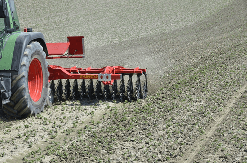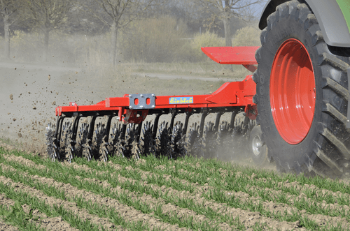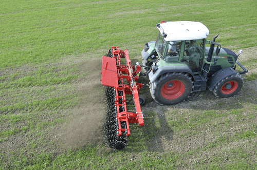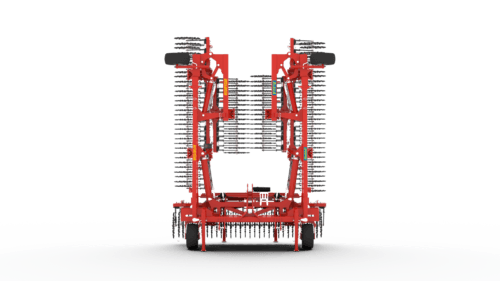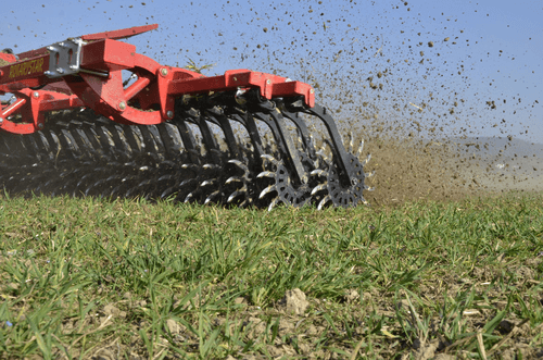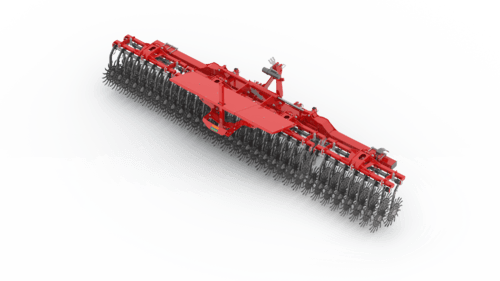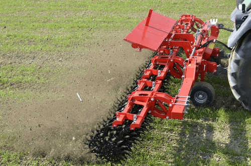 2 rangées de houes rotatives à doigts, la croûte est cassée et émiettée grâce aux pointes des étoiles en forme de cuillère.
