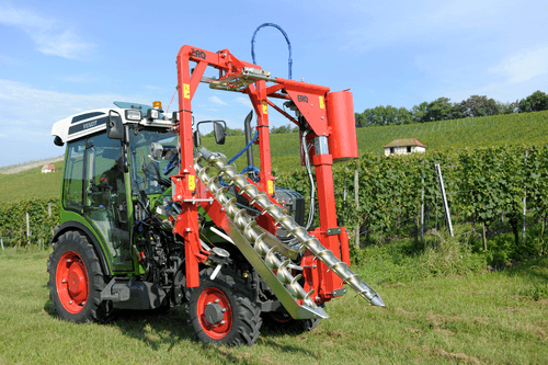 Le palissage s’effectue en douceur au moyen de grandes vis sans fin et se fait avec la ficelle sans aucune adaptation au préalable du vignoble. L’écimeuse, en option, permet de remplacer le premier écimage. Suspension pendulaire pour une utilisation aisée même en terrain pentu.