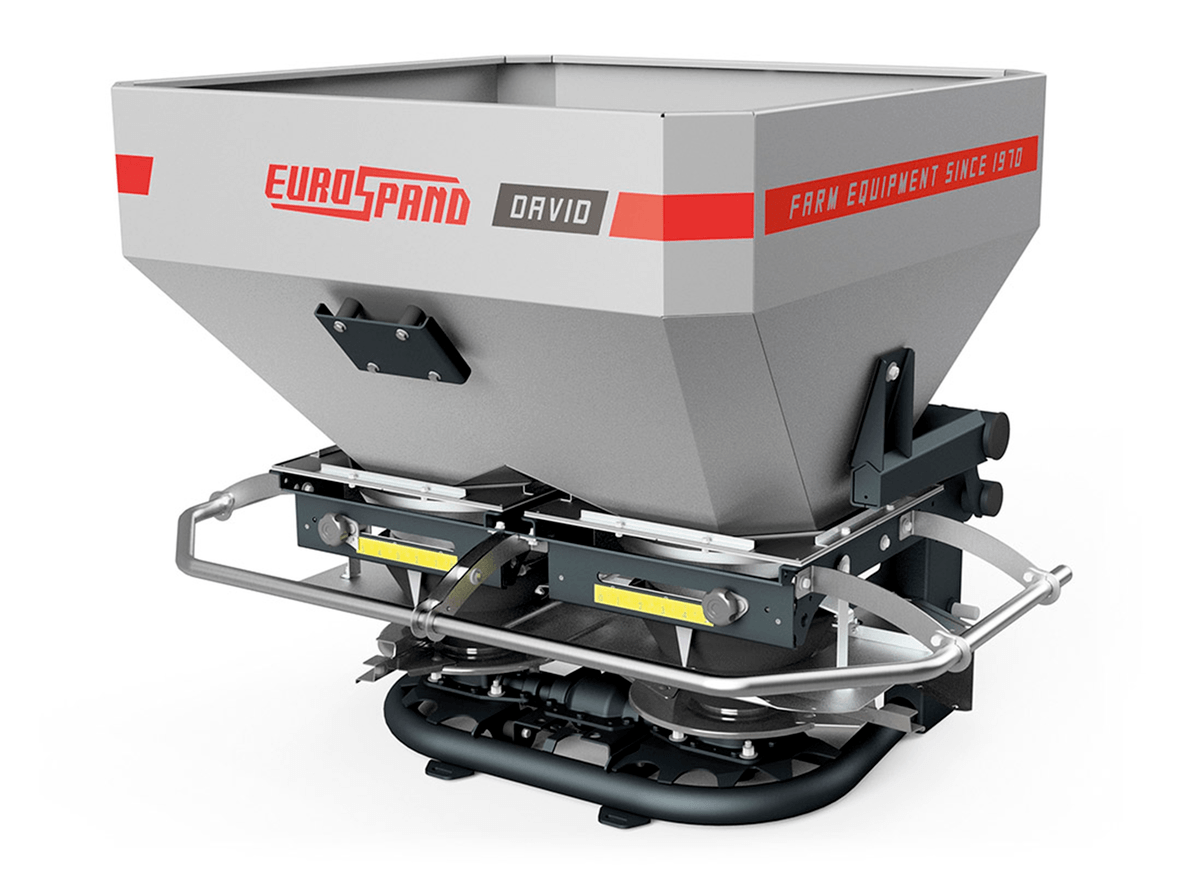 La gamme de distributeurs d’engrais à double disque se compose de la série DAVID, un modèle de petites dimensions pour les petites et moyennes parcelles. Avec une capacité jusqu’à 1 000 L et une largeur d’épandage jusqu’à 15 m. Pour les vignes et vergers avec le modèle DAVID FRUITS avec une largeur de seulement 1,1 m conçu pour la fertilisation au centre du rang ou dans les serres, fertilisation localisée pour les légumes sur les rangées de 50 à 85 cm et des sous-sol avec l’enfouisseur SOLCO de la même marque.