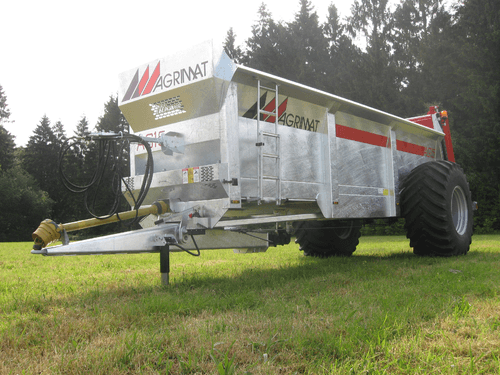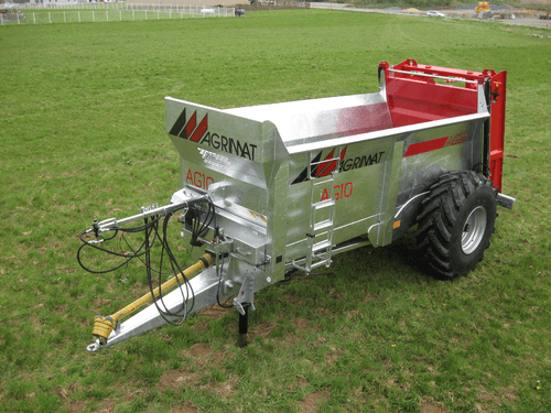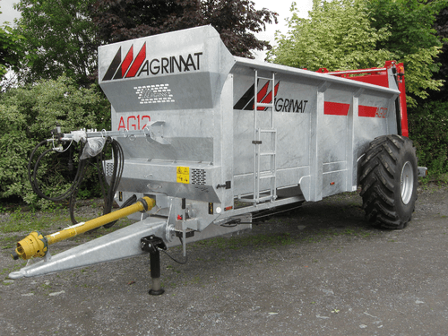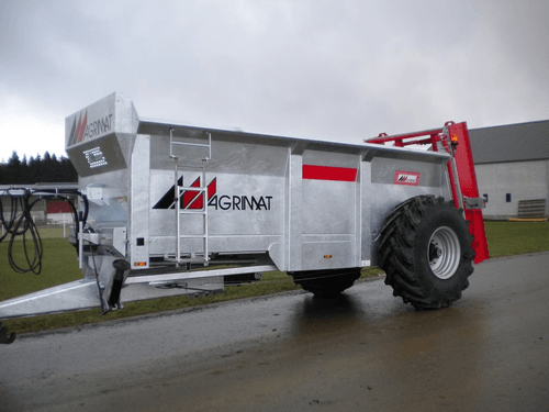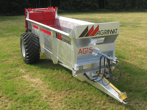 Epandeurs de fumier monocoque série AG surbaissé à 2 vis verticales. Caisse à côtés évasés de forte épaisseur (4 mm et 8 mm au passage des chaînes), hérissons x 1900 mm : 2 vis sans fin verticales, épaisseur 10 mm, inclinées avec couteaux HARDOX boulonnés réversibles ø vis 875 mm (sauf ag8), frein pneumatique, avance du tapis hydraulique avec régulateur de débit sur support (double effet tracteur), entraînement des boîtiers par transmission 540 trs et 1000 trs/min (cardan), cric hydraulique, axe arrière ø 55 mm, éclairage conforme au code de la route, largeur d’épandage : jusqu’à 9 m (selon produit), échelons d’accès extérieur, flèche ressort – anneau fixe, tapis 2 chaînes marines : 14 mm pour AG8 – AG10 – AG12 16 mm pour AG15, transmission avec sécurité à boulon et roues libres. Grand choix d’options pour chaque utilisateur.