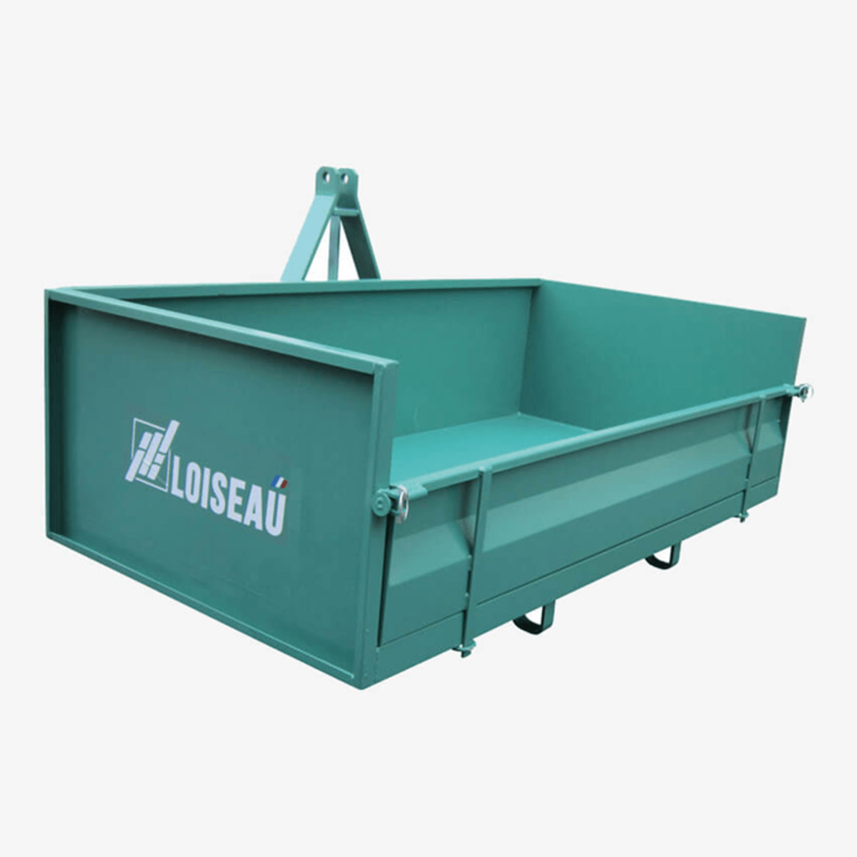Une grande gamme de bennettes 3 points composée de bennes Optimium à basculement sur bras de relevage avec lame rabot, de bennes à basculement central avec lame rabot de 10 à 15 cm ou sans lame rabot, de bennes ECO avec ou sans attelage 3 points et de bennes LOURDE basculement central et basculement hydraulique sur bras de relevage. Différents types d’attelages selon les modèles, semi-automatique, automatique, attelage étroit. De 1,20 m à 2 m en fonction des modèles.