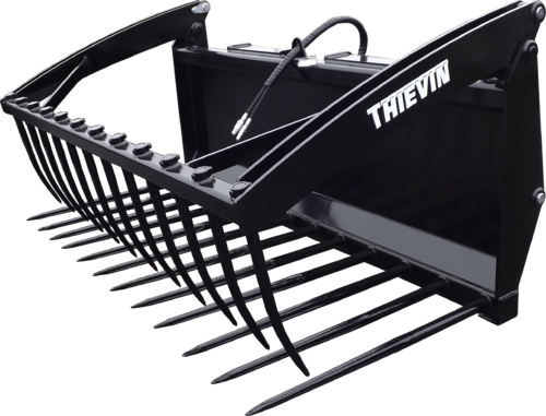 La fourche à grappin FOG existe pour mini chargeurs, télescopique ou toutes les puissances de tracteurs. Accrochage soudé, ouverture par 2 vérins double effet, coupleurs hydrauliques... Largeur entre 1 m et 2,70 m en fonction du modèle et un volume de 300 L à 1 980 L selon la fourche à grappin.