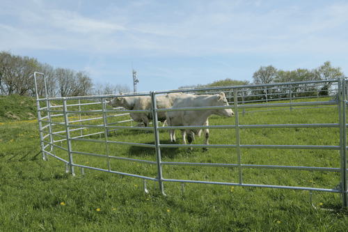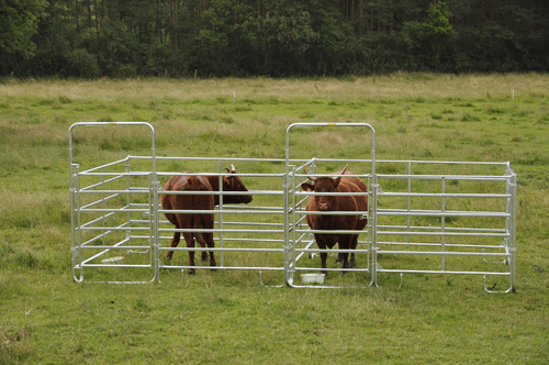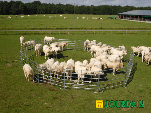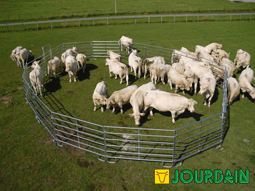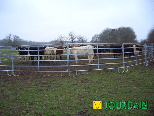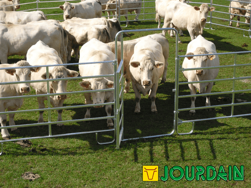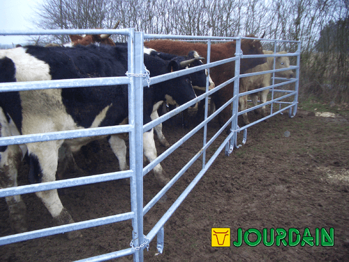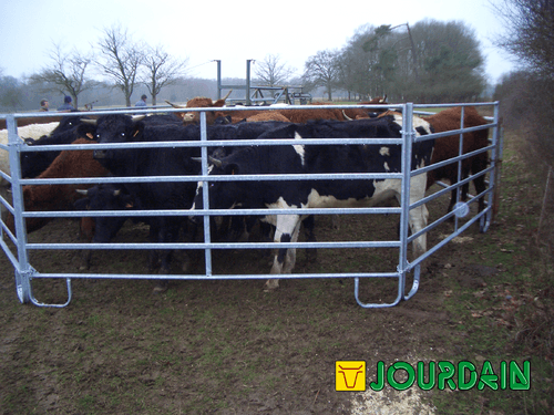 Barrière légère de contention pour bovins et chevaux permettant la réalisation simple et rapide de parcs mobiles de contention. Panel de contention fabriqué en tube ovale de 50 x 25 mm (extérieur) et 42 x 21 mm (intérieur). Entre tubes de 21 cm et hauteur de 1,57 m. 3 longueurs de panel possibles: 2,40 m, 3 m et 3,60 m.