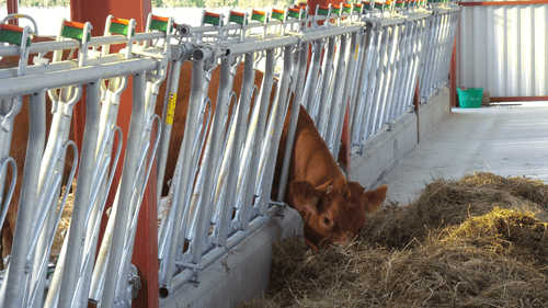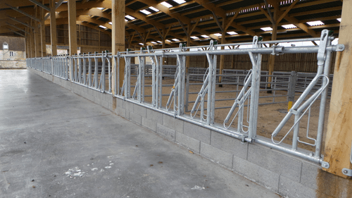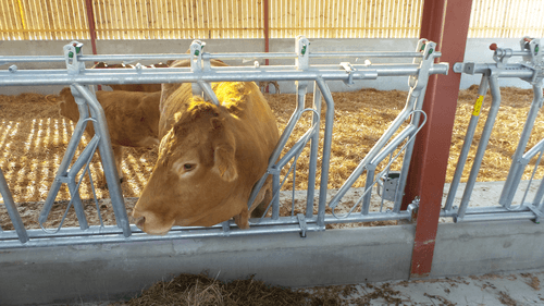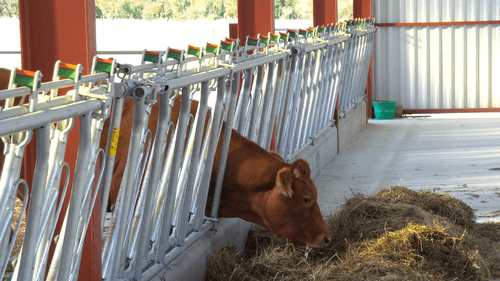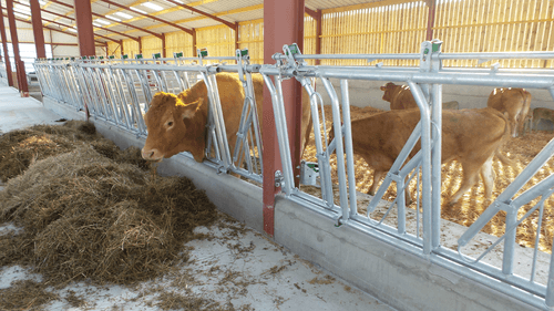 Le cornadis réglage collectif est dérivé du cornadis axial I, avec ses bras mobiles cintrés et ses plats de fourche galbés, il offre un grand passage de tête pour les animaux faiblement encornés.