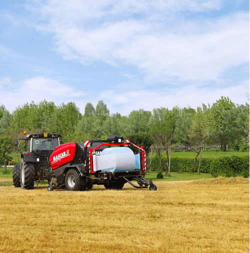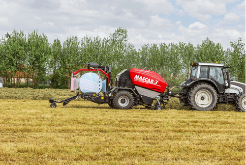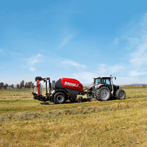 Chambre fixe à 18 rouleaux, balles 1,20 x 1,30 m, pick-up largeur 2,10 m avec roues réglables et rouleau tasse andain, ameneur rotatif en HARDOX® avec nettoyage automatique des couteaux. Liage automatique, pneus 600/55-22.5, système de gestion automatique des phases de pressage et d’enrubannage. Contrôle de la densité de la balle par le boîtier électronique, lubrification automatique des chaînes, cardan grand angle à cames, trappe de débourrage, double satellites avec tendeur de film pour bobines de 750 mm, supports 6 bobines, feux à LED. Autres options possibles.