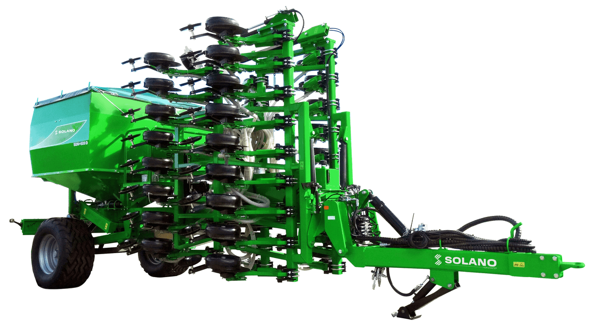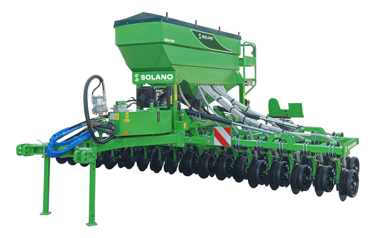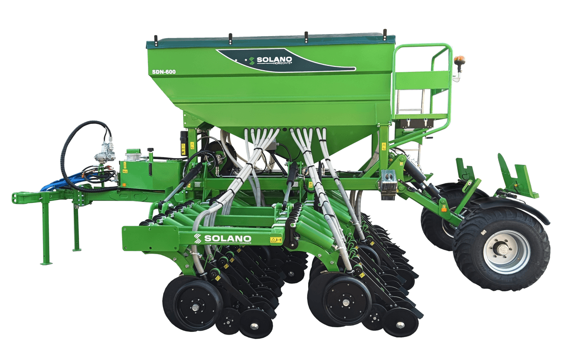 Gamme de semoirs pneumatiques direct de semis, avec simple ou double trémie Isobus en série. Les modèles SDN (simple trémie) sont des semoirs directs pneumatiques à disques (mono disque avec roue compacteuse en fonte et roue de rappui intermédiaire) avec sécurité ressort (bagues en téflon). Une centrale hydraulique indépendante alimente la soufflerie.