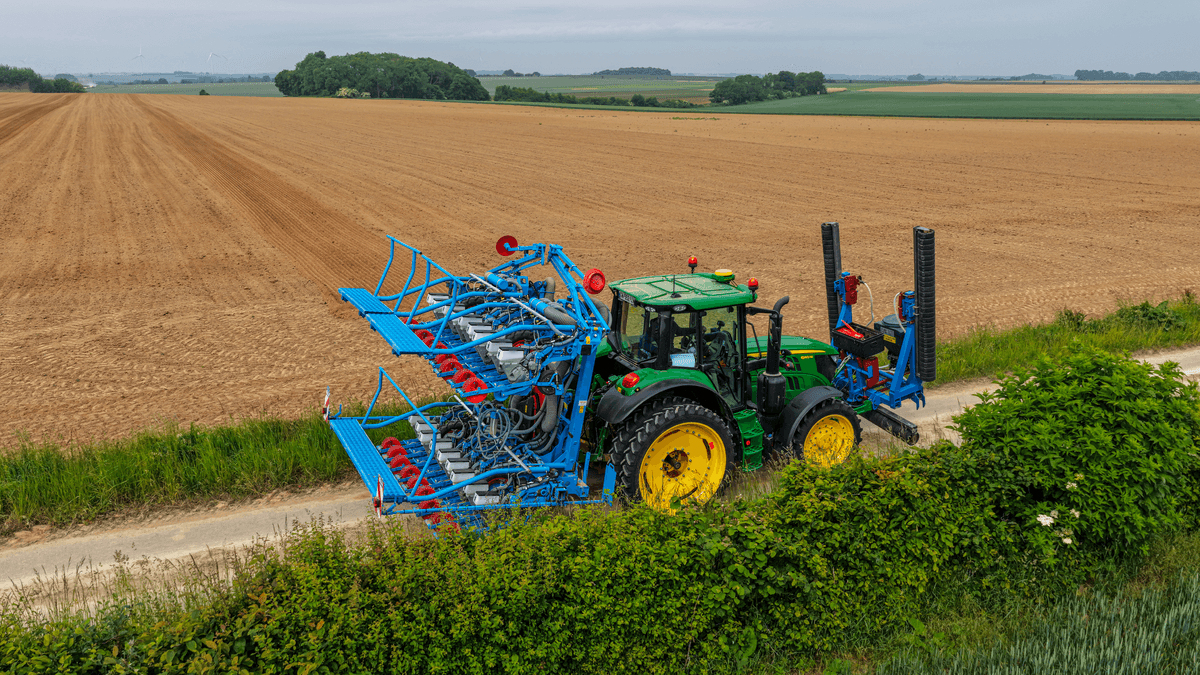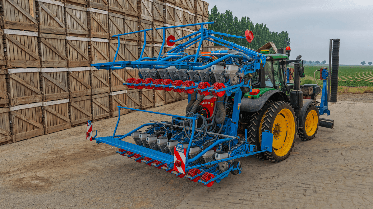 Semoir monograines pneumatique à enterrage à disques.
