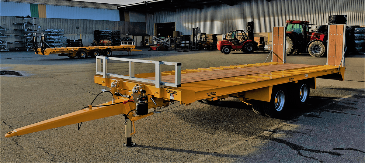 Deux gammes de porte engins de 8,5 T à 24 T de charge utile sur la gamme PEA à plateaux basculants et de 19 T sur la gamme à plateaux fixe PAF avec un poids total en charge allant de 10 à 32 tonnes en fonction du modèle. Freinage hydraulique homologation 40 km/h et frein de parc. Plancher mixte acier avec barrettes anti-dérapantes et bois exotique (bois massif traité sur modèle PEA 890). Ossature robuste mécanosoudée et renforts sous plateau. Barre anti-encastrement, feux latéraux oranges et feux de gabarit norme 2020. Feux LED avec gyrophare intégré. Nombreux choix d’équipements possible.