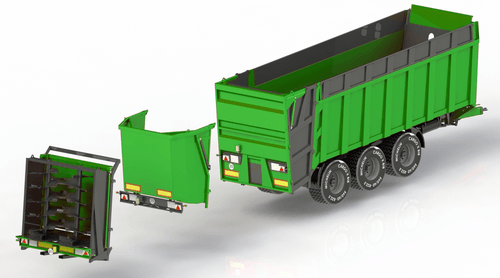 Les bennes à fond poussant TATOMA HMFT offrent de nombreux avantages : volume de chargement supérieur grâce à la compression, déchargement plus rapide et sécurisé avec un centre de gravité très bas, utilisable toute l’année même pour des matériaux lourds, transformable en transbordeur ou en épandeur à fumier. Nombreuses options et équipements disponibles.