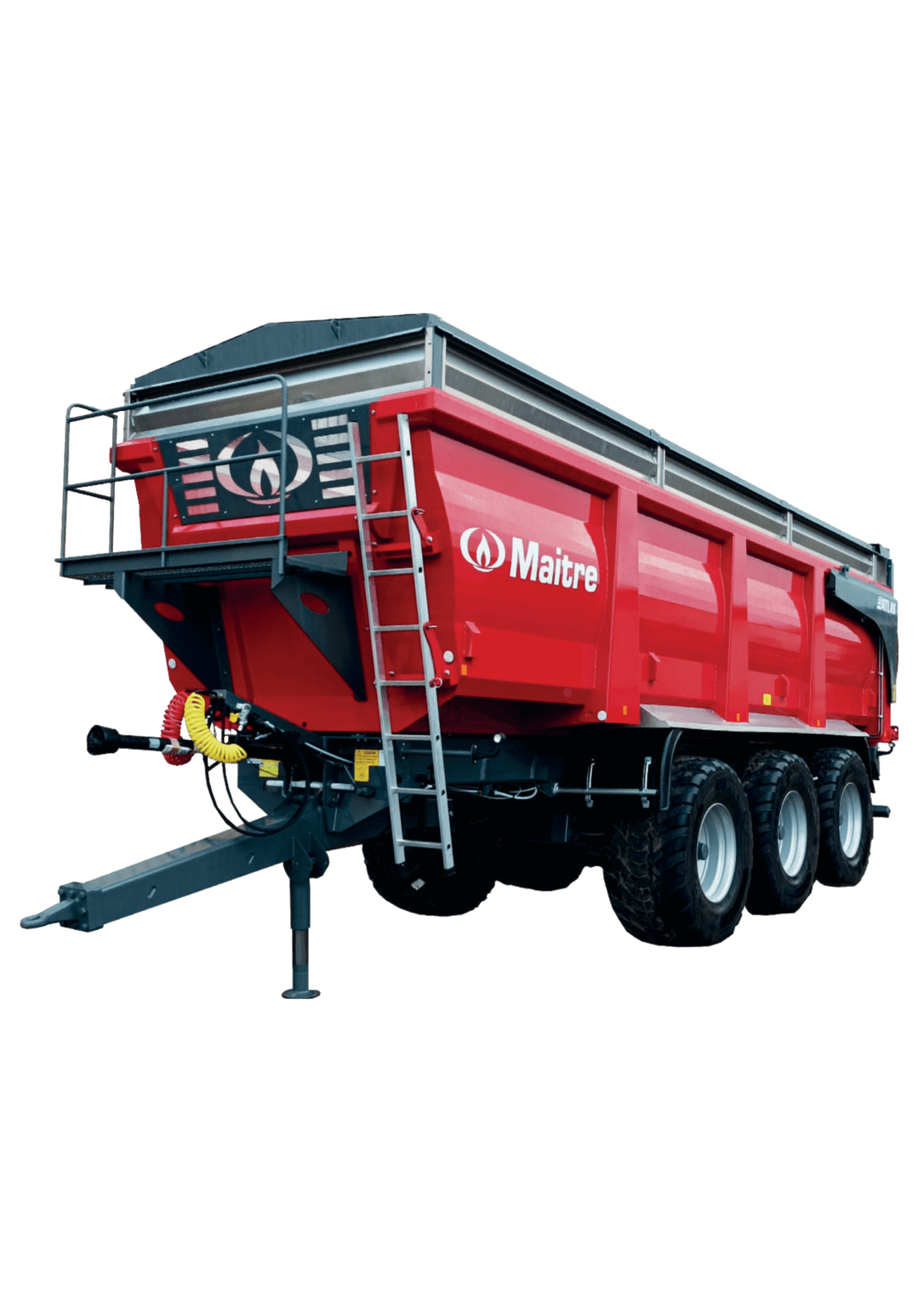 Remorque monocoque haut de gamme chez Maitre. Disponibles de 12 à 24T en essieu boggie, tandem ou tridem et freinage double ligne hydraulique ou pneumatique. Finitions premium : cotés monoblocs, large hublot avant, conduits hydrauliques rigides, réhausses alu, porte hydraulique avec crochet automatique, flèche suspendue... Pensée pour durer et évoluer, prédisposition aux options majeures intégrée de série.