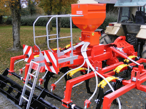 Le déchaumeur à dents peut être utilisé tant en premier déchaumage que reprise de labour grâce à des rangées de dents (3 + rouleau sur la version polycult, 2 + 1 rangée disques + rouleau sur la version kombx). Composé de 13 à 28 dents pour une largeur de travail de 2,92 m à 6,16 m selon modèle.