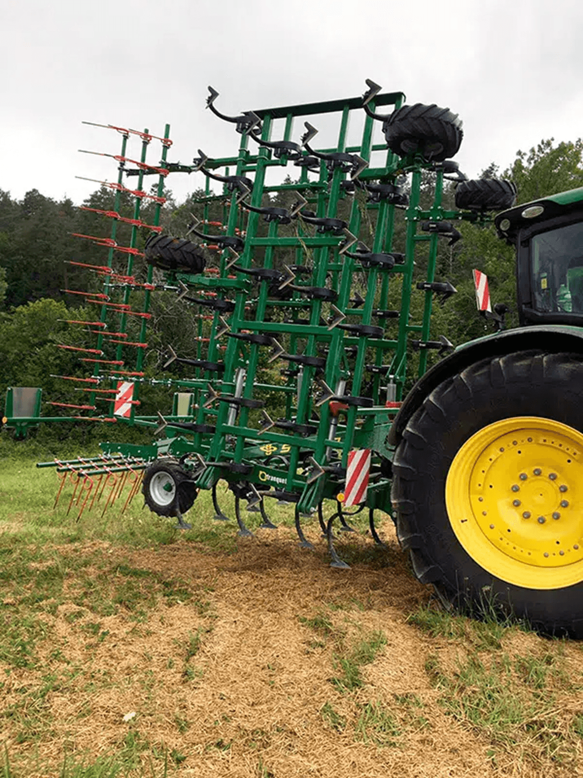 Le scalpeur mécanique CULTISCALP est un outil de désherbage polyvalent pour préparer le labour, déchaumer et scalper le faux semis. Il permet de détruire les chaumes, les résidus de végétaux ou les couverts. Scalpeur à dents vibrantes avec très grand dégagement sous bâti Empêche le repiquage et nivelle le sol efficacement. Avec une répartition parfaite de la matière organique grâce au triples peignes. Châssis 4 rangées de dents Hercule 70 x 12 mm ou 90 x 13 mm et triple peignes. Il est disponible de 6 À 9 m portés - 12,5 m autoporté
