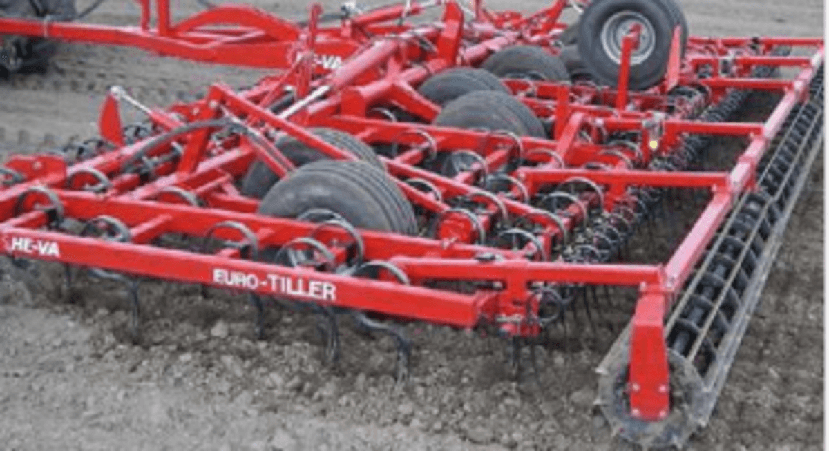 1 - Le vibroculteur Euro-Dan Eco équipé de 4 rangées de dents de herse pour une profondeur contrôlée, réglée et régulière de la herse et un compactage uniforme avec de grandes roues maintenant une profondeur constante sur tous types de sol même difficiles. Disponible de 5 m à 8 m de largeur de travail. Grands choix d’équipements en option pour de nombreuse combinaisons pour différentes tailles d’exploitations. Machine parfaite pout lit de semence pour les betteraves, le maïs et les céréales, etc.