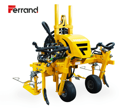Châssis interceps frontal sur 3 points avant ou porte masse. Système pendulaire pour un excellent suivi du sol. Nombreux accessoires possibles : lames, fraises, épampreuses, décavaillonneuses… Pour plantations de 1,50 à 3 m suivant modèle.