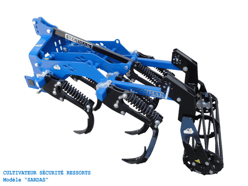 La gamme de cultivateurs sécurité ressorts composées de 2 modèles avec une profondeur de travail de 15-20 cm, un châssis profil de 80 x 80, un écartement entre les dents de 200 mm et entre rangées de 600 mm et un dégagement du sol au châssis de 650 mm.