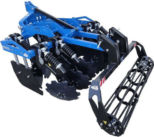 1-Déchaumeurs vigne à double disques ERLA sécurité à double ressort, rouleau cage 320 mm de diamètre, châssis 80 x 80, profondeur de travail de 8 à 12 cm.