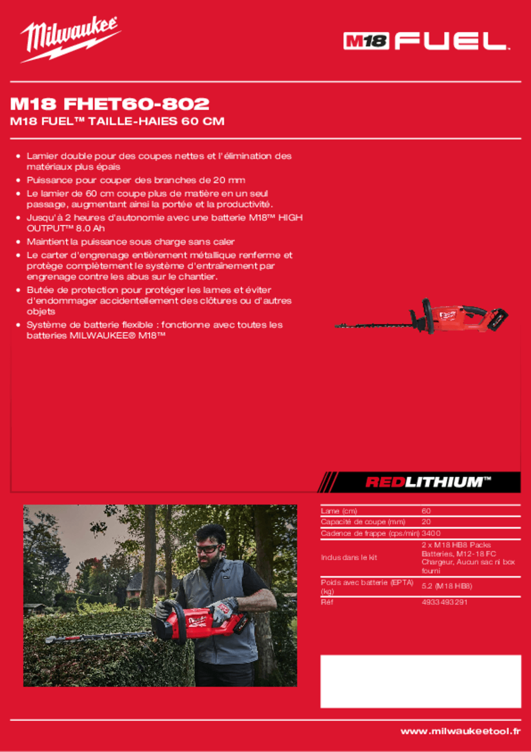 - Taille haie à batterie M18 FHET60-802