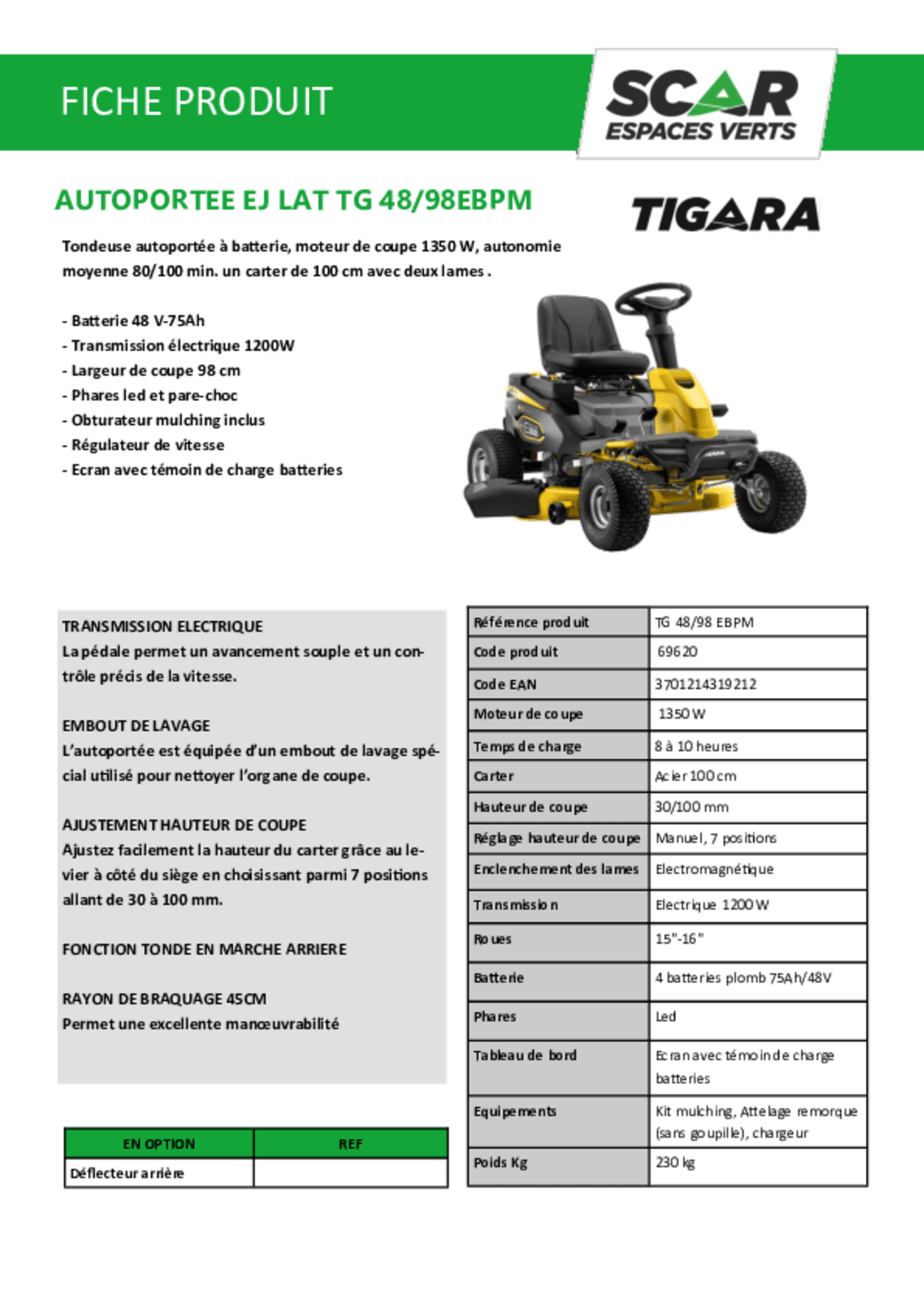 | Largeur de coupe | 98 cm |