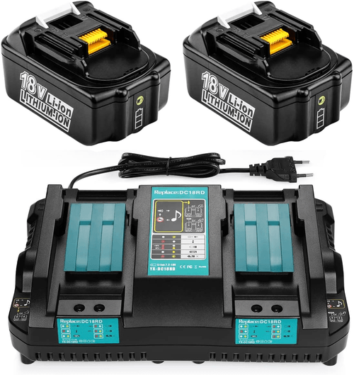 Inclus 2 batteries 18V Li-Ion 5 Ah BL1850. 1 chargeur rapide double DC18RD.