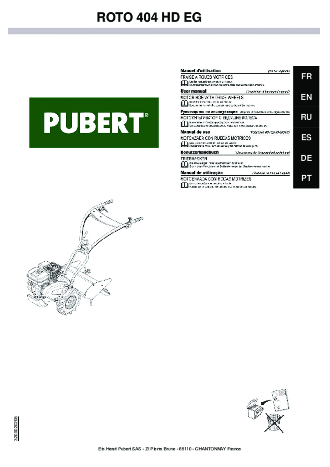 Moteur PUBERT R80. 79 cc. 1 vitesse AV et 1 AR. 4 fraises Ø 285 mm. Roue AV escamotable. Béquille de...