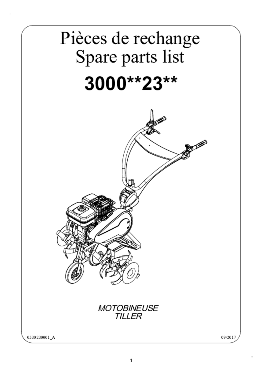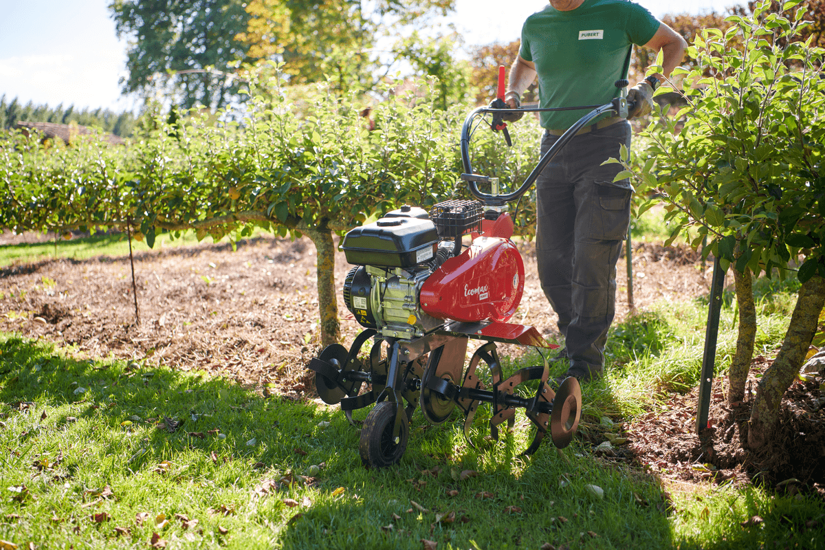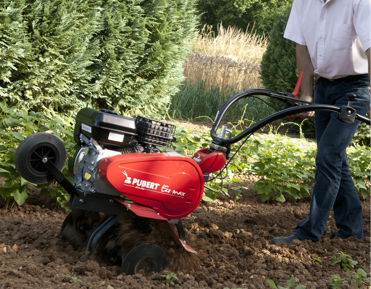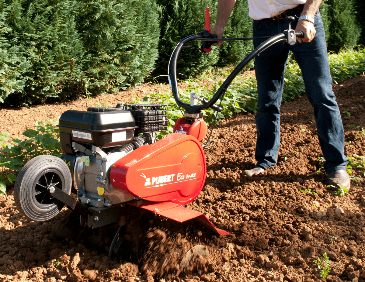 Moteur PUBERT R80. 79 cc. 1 vitesse AV et 1 AR. 4 fraises Ø 285 mm. Roue AV escamotable. Béquille de...