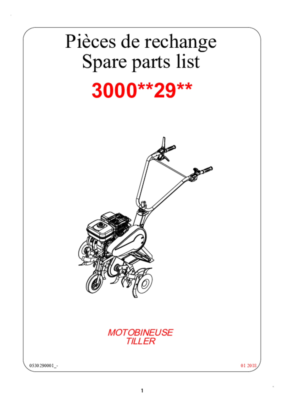 Moteur PUBERT R80. 79 cc. 1 vitesse AV et 1 AR. 4 fraises Ø 285 mm. Roue AV escamotable. Béquille de...