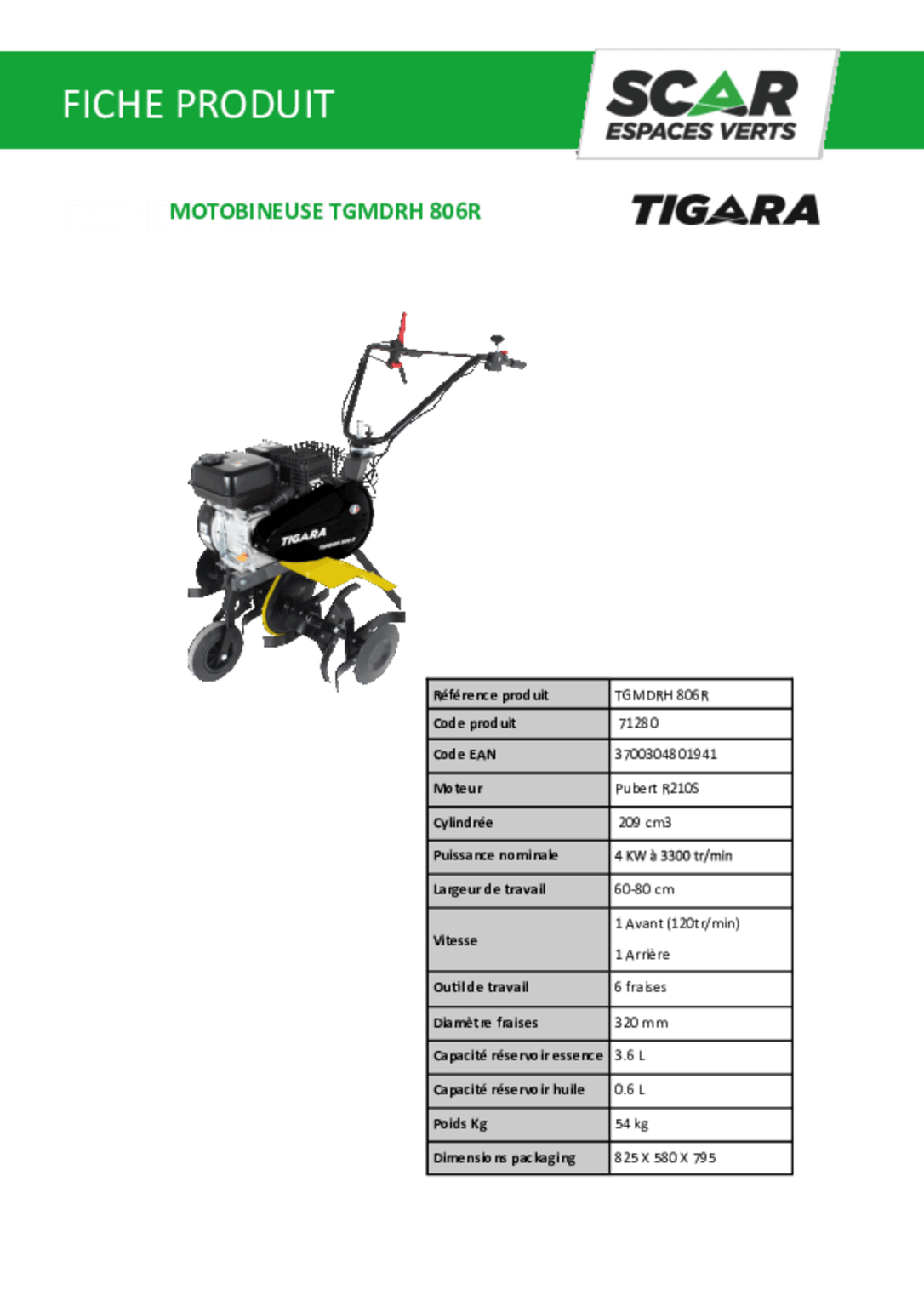 Prix à partir de 375 € TTC.Motobineuse. Modèle TGMRH 546R. Moteur : Rato R80S. Cylindrée : 79 cc. Puissance...