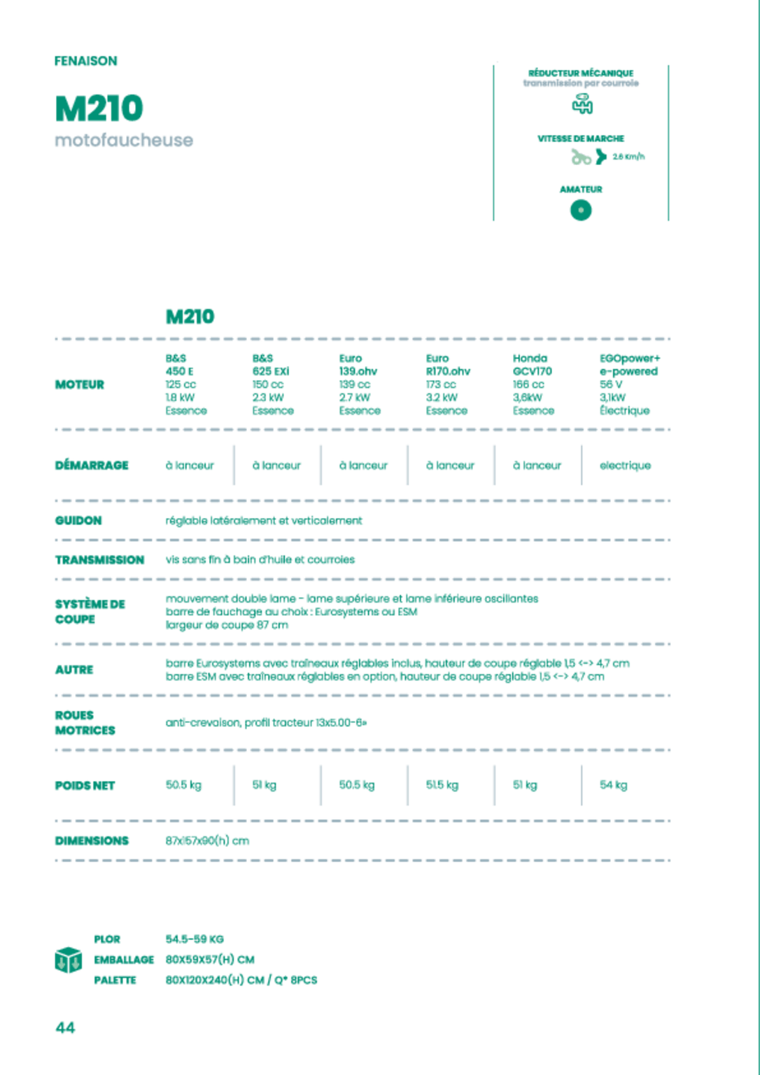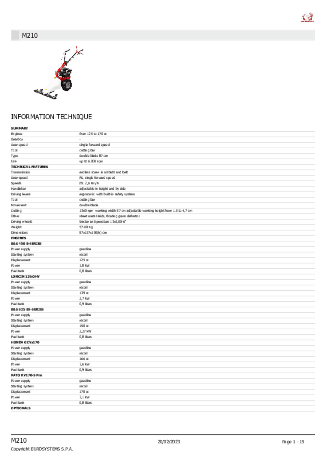 Moteur PUBERT R80. 79 cc. 1 vitesse AV et 1 AR. 4 fraises Ø 285 mm. Roue AV escamotable. Béquille de...