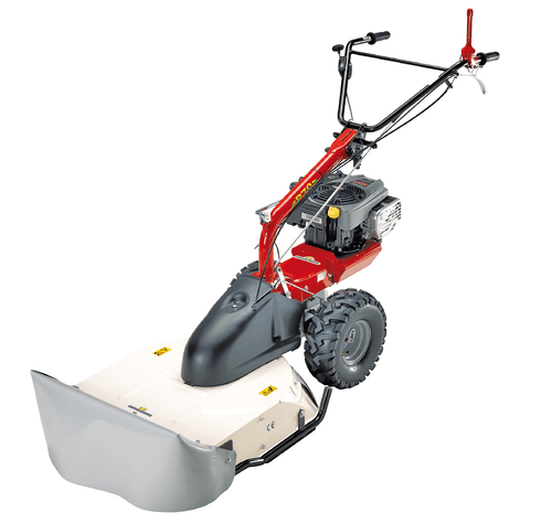 Moteur LONCIN OHV. 224 cc. 4,35 kW. Démarrage manuel. Transmission à engrenages et vis sans fin dans un bain d'huile et courroie. 3 vitesses avant (2 avec fraise), 2 vitesses arrière (1 avec fraise). Guidon déportable, repliable et réglable en hauteur. 2 roues 13x6x6.