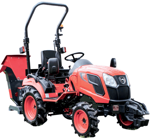 En option : roues gazon ou industrielles, chargeur 4 vérins avec parallélogramme, masses frontales, outil attelé.
