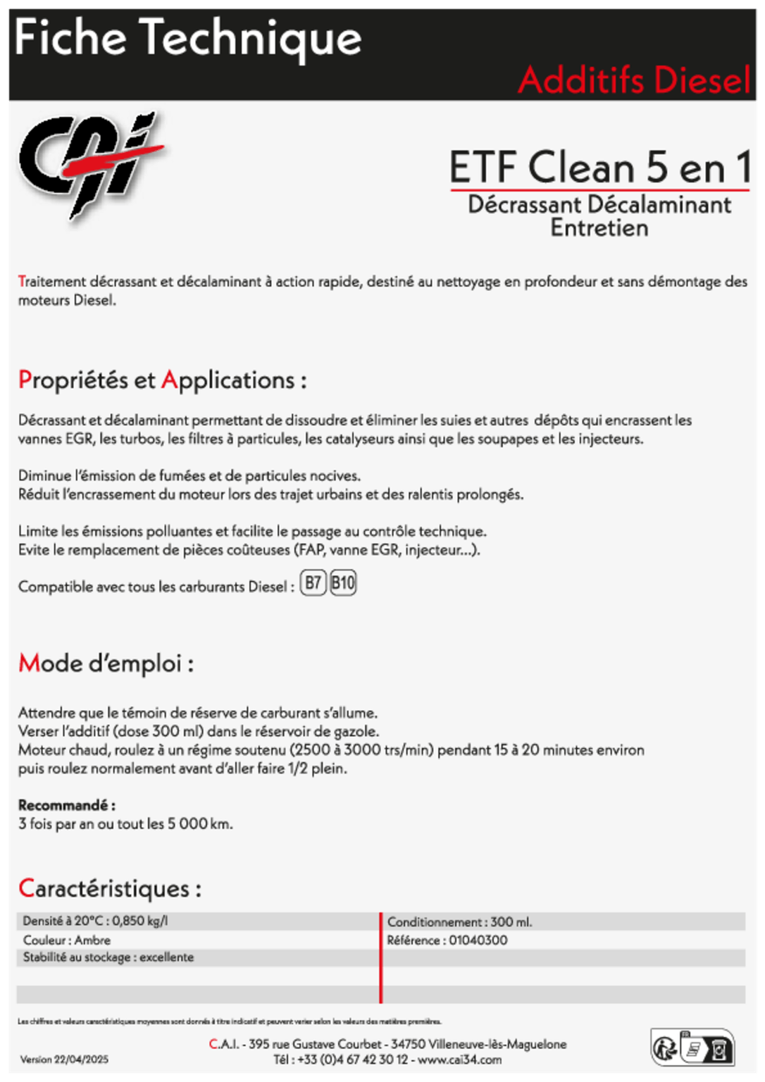 Nettoie gommes, vernis et dépôts dans le circuit d'alimentation et d'injection.