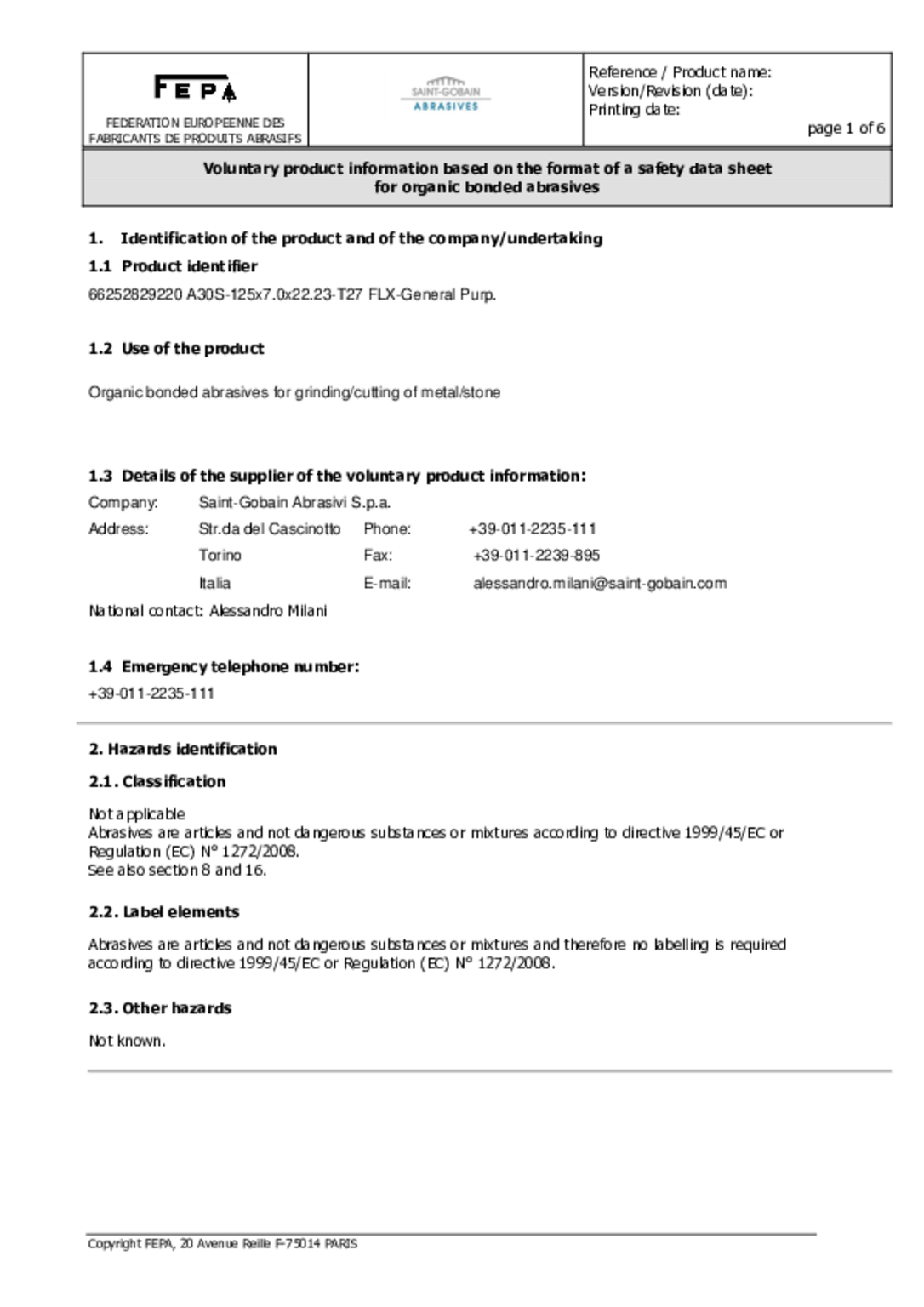 Meule de tronçonnage. Moyeu plat. Acier/acier inoxydable. Formule sans soufre, ni fer, ni chlore. Applications universelles. Dimensions : 230x2,5x22,2 mm. Spécification : A 30 S-BF41.