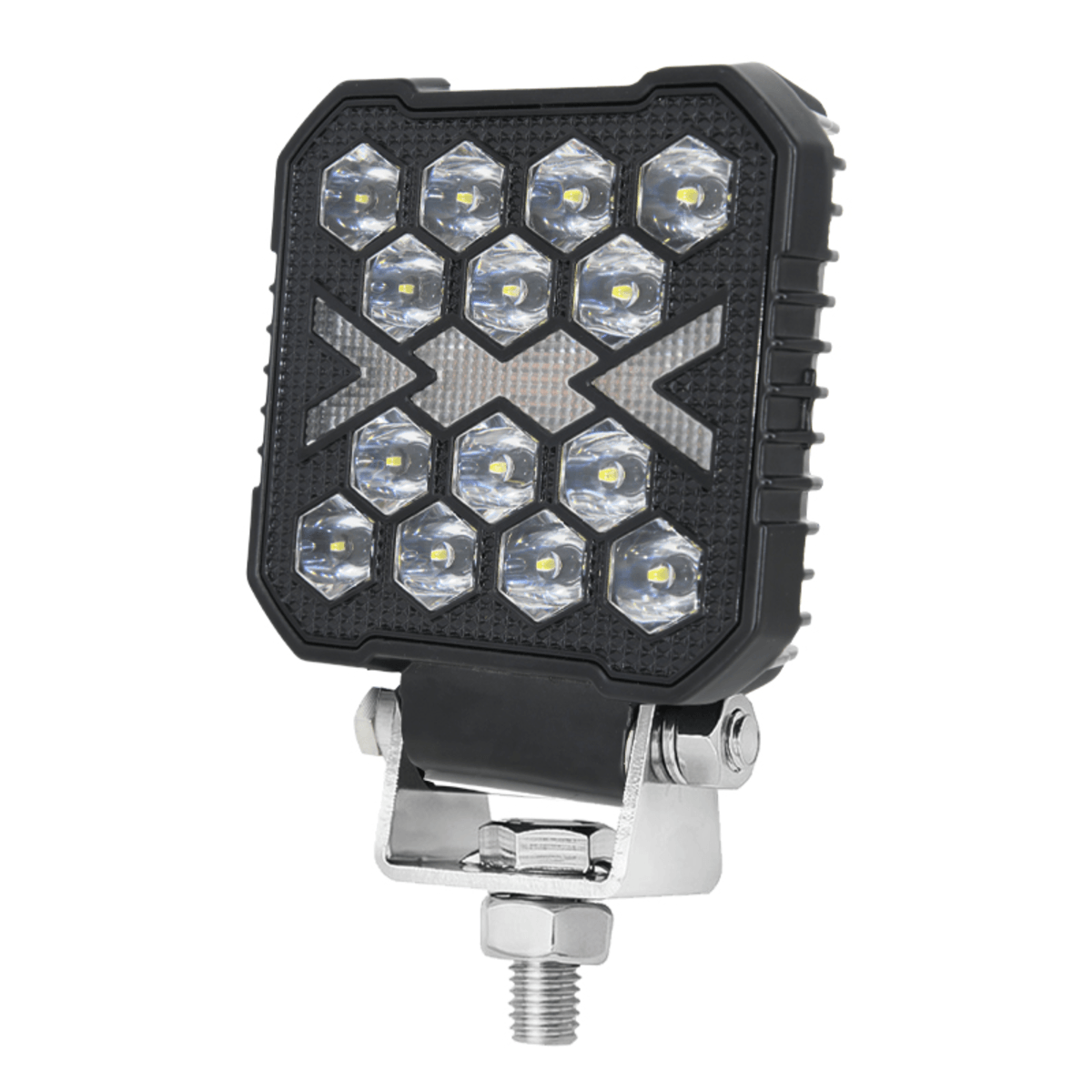 52 W. CISPR25 CLASS 4. IP68. Lumens théorique : 5 200. Lumens pratique : 4 160, Faisceau éclairage large 9-32 V. Dimensions : 110 x 127 x 32 mm. Corps en aluminium. Livré avec câble type Deutsch 40 cm.