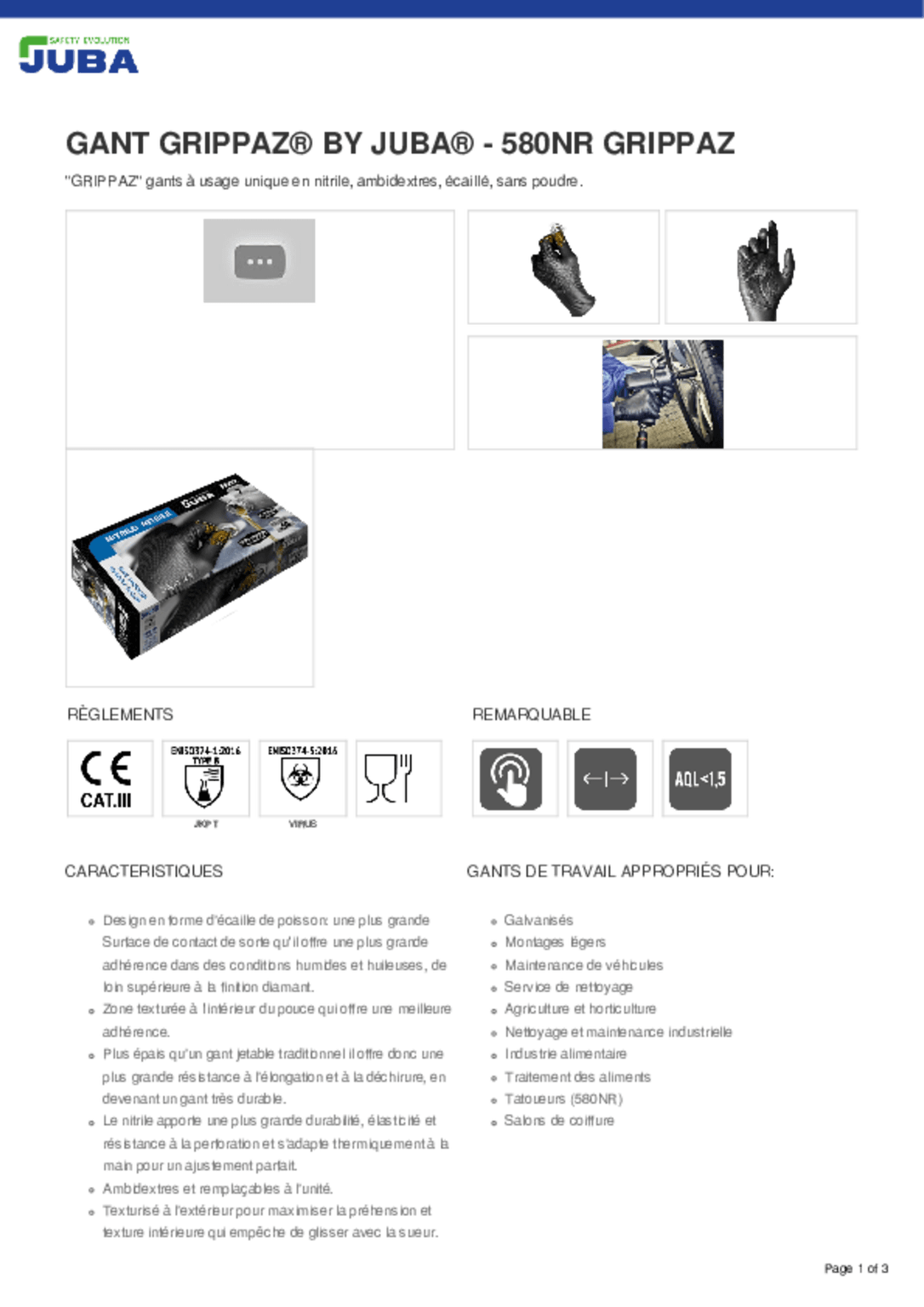 Conformes à la norme ENISO374-5:2016 et ENISO374-1:2016 type B.