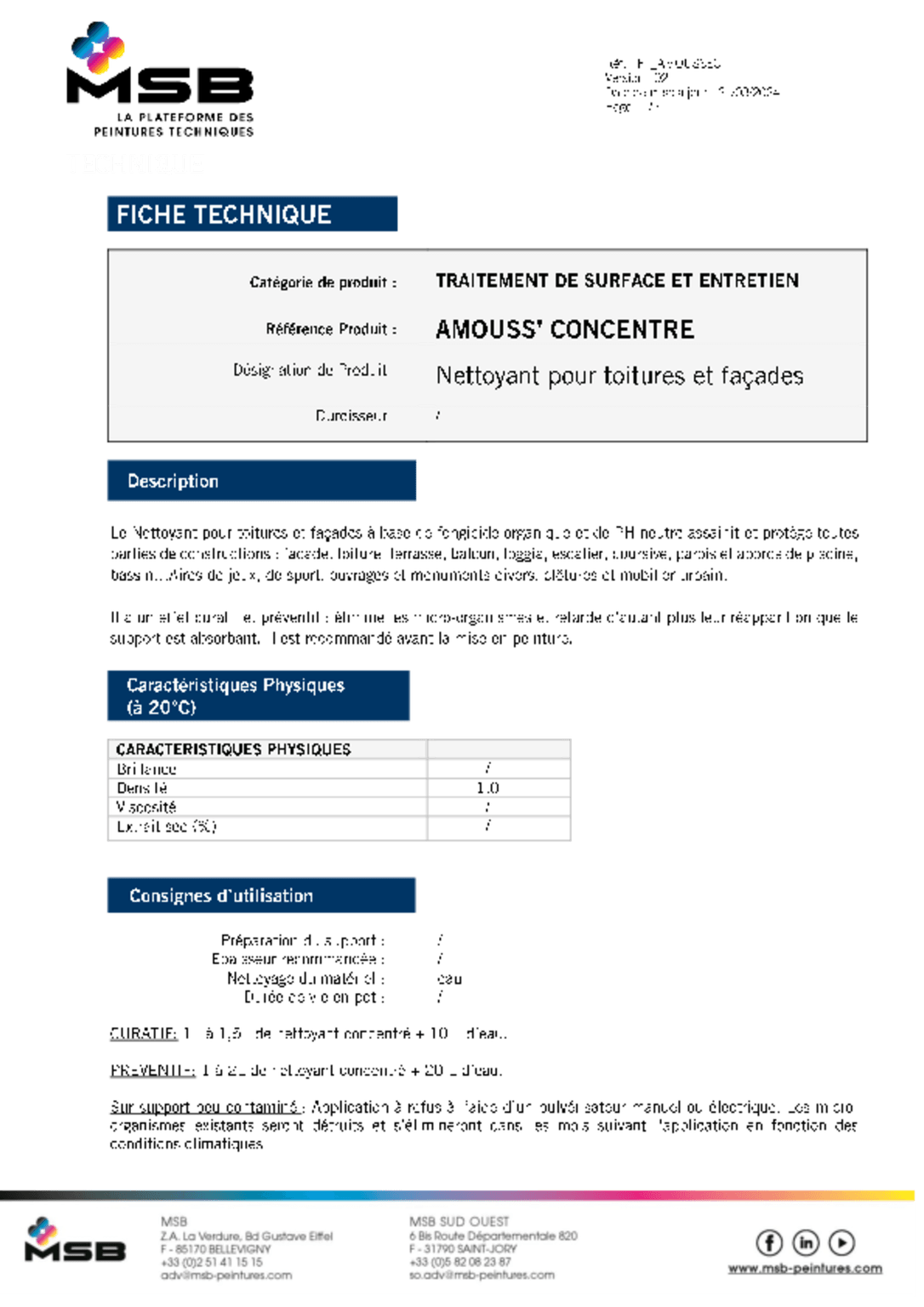 Curatif et préventif: 1 L d'anti-mousse + 10 L d'eau.