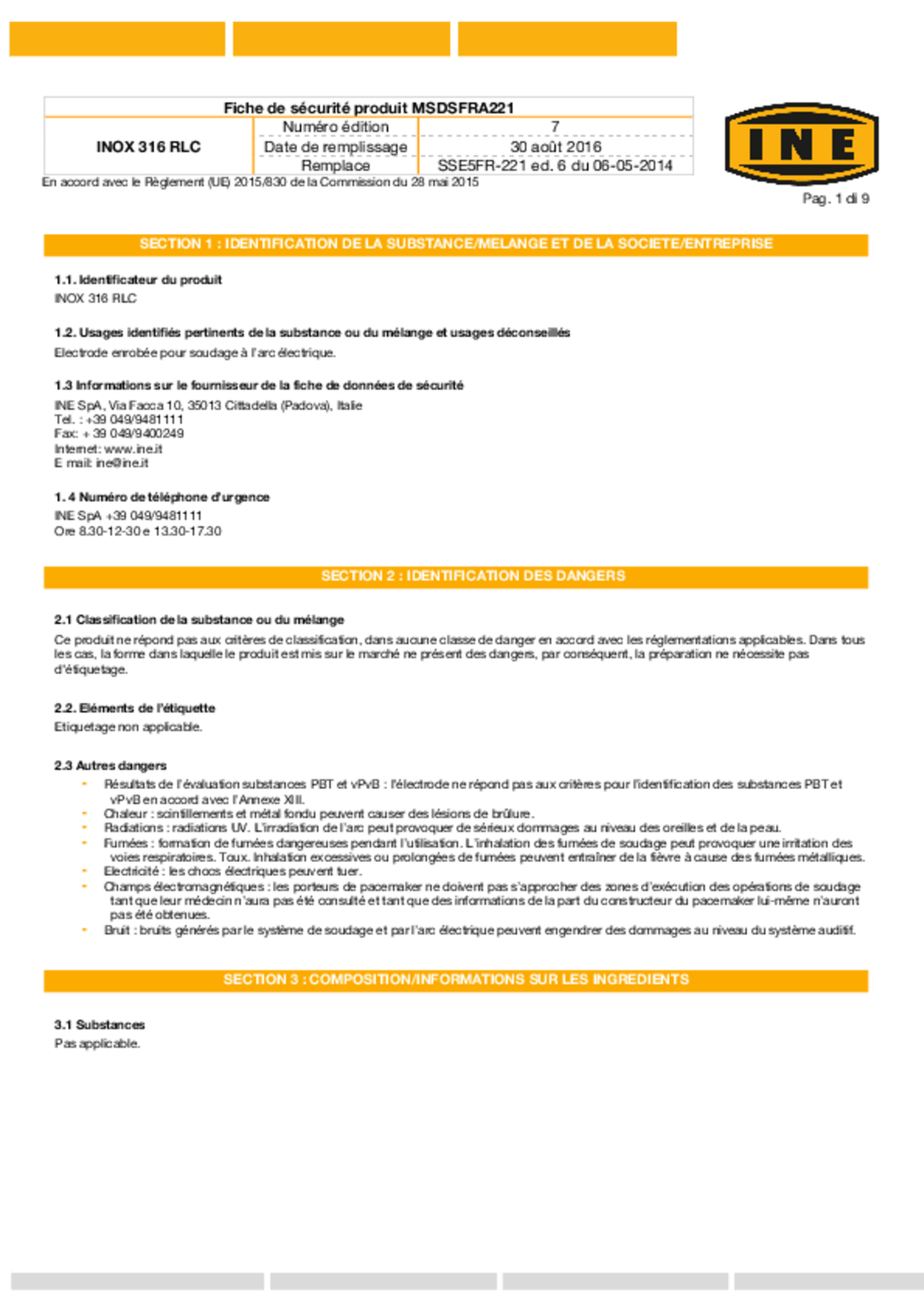 316L. A enrobage rutilo-basique à très basse teneur en carbone. Ø 2,5 x 300 x 30.